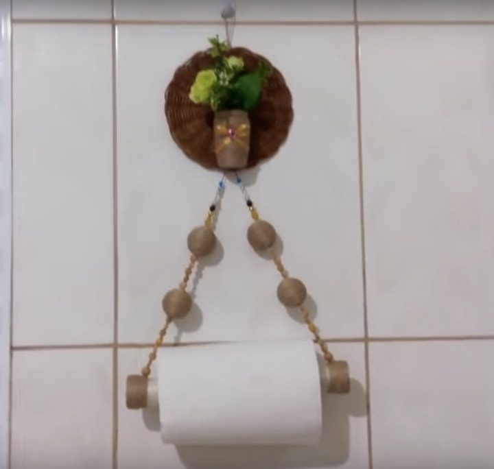 В держатели для шарика вставьте круглое основание для бумажных полотенец. Повесьте полотенца.