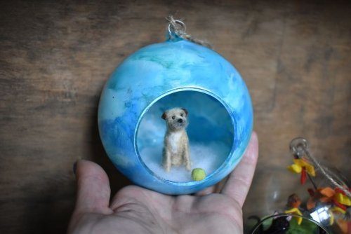 В последнее время она увлеклась созданием стеклянных украшений, вдохновлённых домашними животными и природой. По словам художницы, ей нравится работать с натуральными материалами, а вызов самой себе попробовать поработать с такими миниатюрными размерами она восприняла с удовольствием. Идеальные ёлочные украшения, правда?