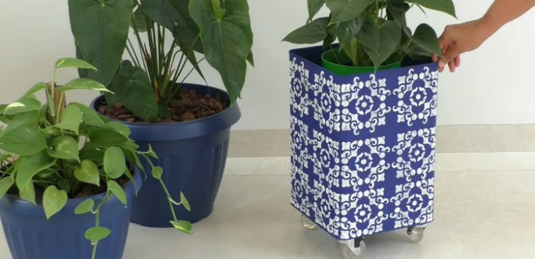 Внутрь помещаем цветок в горшке и наслаждаемся результатом!