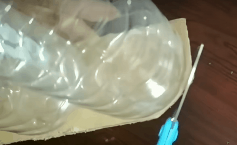 Вырежете широкое кольцо из пластиковой бутылки (можно использовать верхушку бутылки из первой идеи). Разрежьте его по высоте с одной стороны.