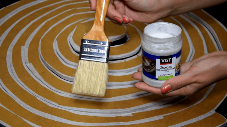 Наносим на картон разметку по принципу спирали от края окружности к центру.
