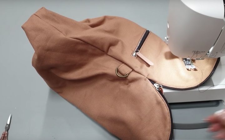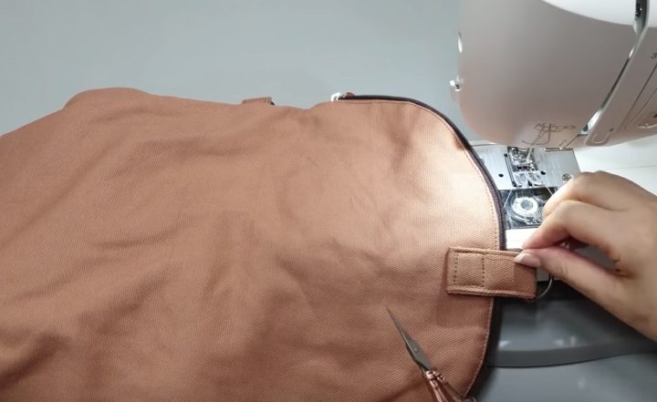 Третье кольцо закрепите посередине у молнии, сделав швом квадрат.