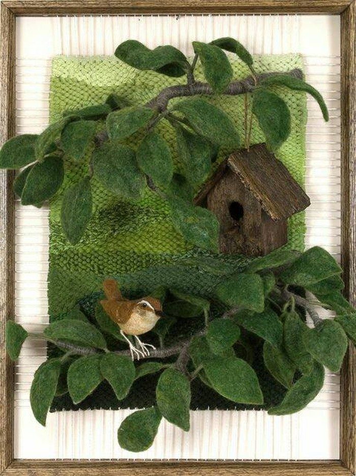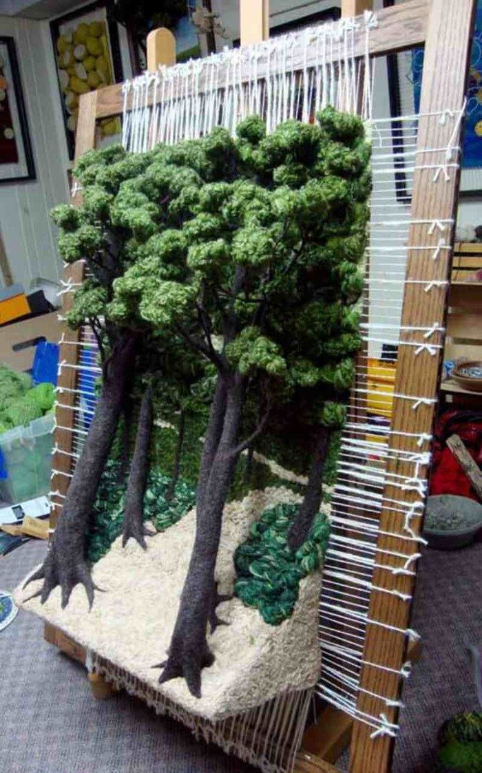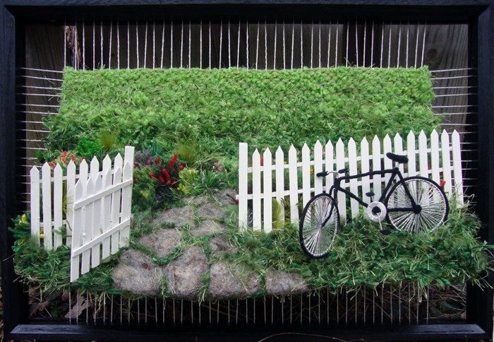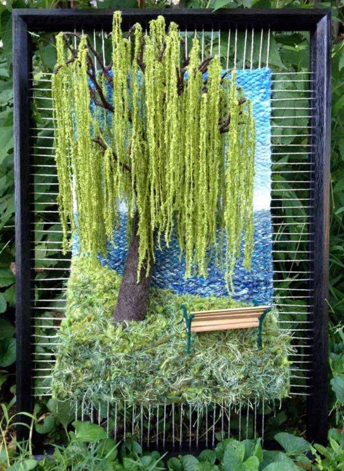 Объемные тканые картины своей реалистичностью. 3D-пейзажи, миниатюры, посвященные обитателям лесов и рек, огородная тематика, бытовые мелочи — все это является предметом любования.