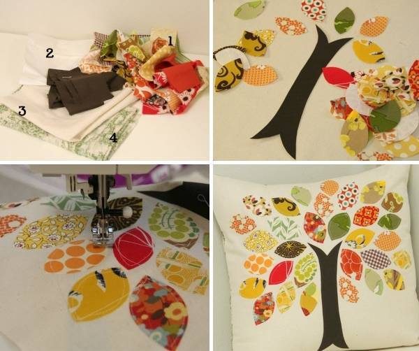 Декорирование подушек с применением вышивки, пуговиц, кусочков ткани и т.д.