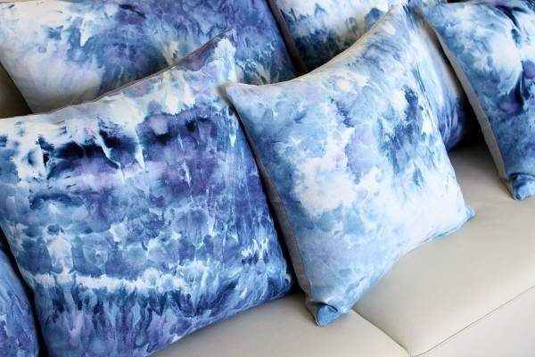 Создаем декоративные подушки на диван с покраскойСтильные подушки, которые были покрашены с помощью … льда.