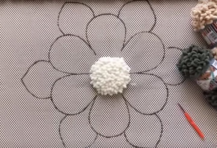 Возьмите пряжу другого цвета и по этой же технологии заполните серединку цветка.