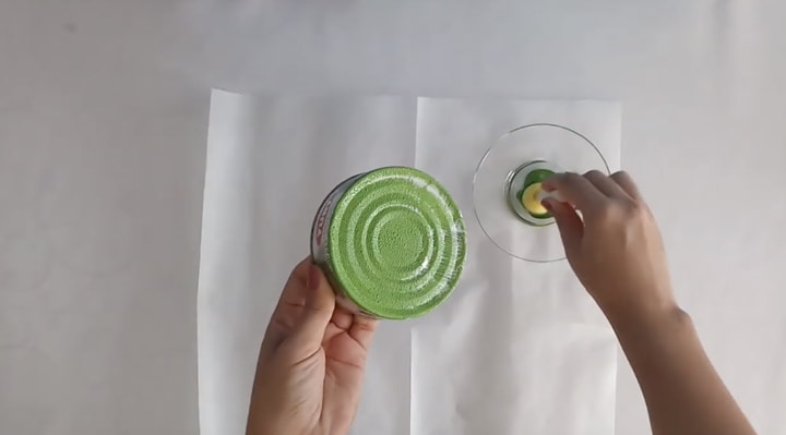 Две крышки от пластиковых бутылок покрасьте той же краской. Высушите. Можно дополнительно покрыть финишным матовым или перламутровым слоем.