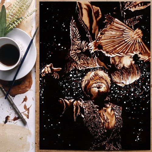 Нурия Сальседо (Nuria Salcedo) ─ художница-самоучка, которая с помощью кофе создаёт невероятно детализированные рисунки и портреты знаменитостей.