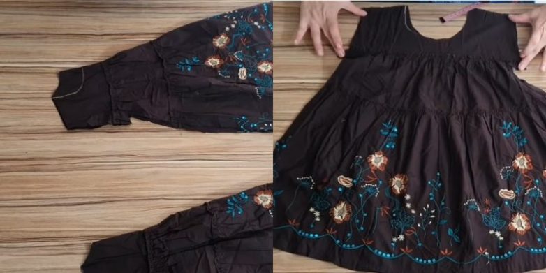 Только посмотрите, какие чудесные детские платье и юбочку можно сделать из такой взрослой юбки.