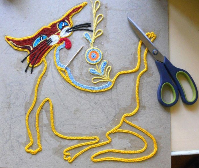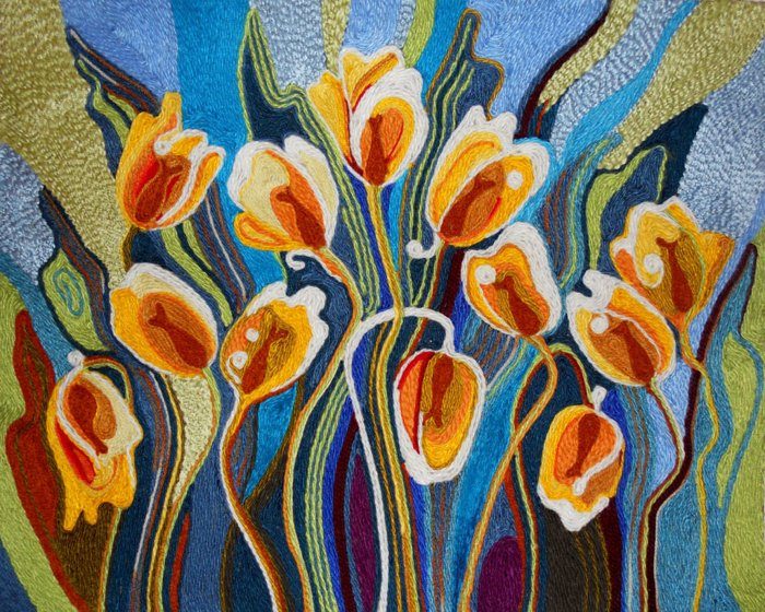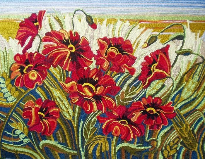 Отрезайте концы нитей острыми ножницами или ножом. Не стоит пытаться их оборвать. После того, как картина высохнет, прогладьте ее горячи утюгом. Вот несколько работ, которые могут вас вдохновить: