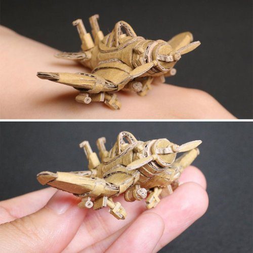 Монами Оно умеет создавать из картона самые невероятные скульптуры, от обычных часов и популярных закусок до более сложных: автомобилей, роботов и персонажей поп-культуры. Все они выполнены очень тщательно, во всех деталях, и невероятно реалистично.