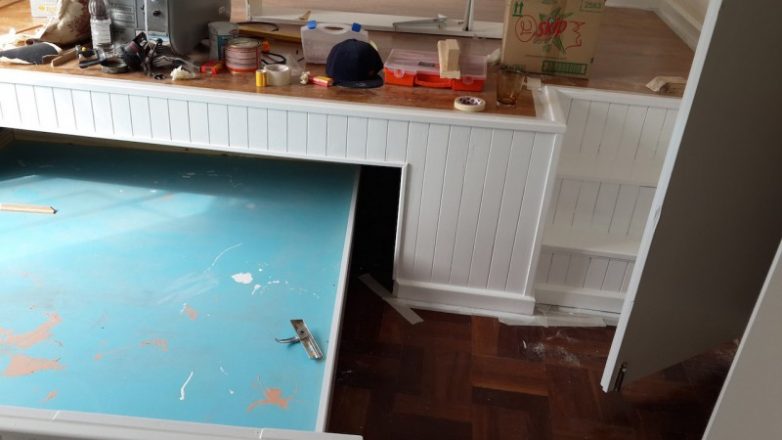 С основой для кровати и «сцены» разобрались. Теперь нужно покрыть их поверхность досками.