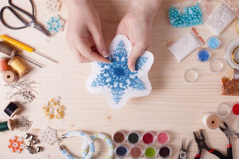 Снежинки из бисера можно считать классикой наряду с бумажными.