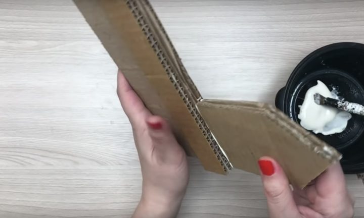 Склейте картон в три слоя с помощью клея ПВА. По верху приклейте «полочку» в один слой.