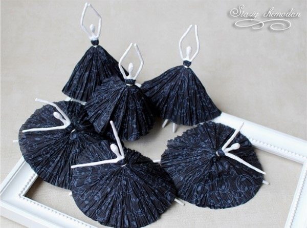 Для создания самой простой бумажной балерины вам потребуется:бумага, из которой будут вырезаны силуэты и юбочки балерин;