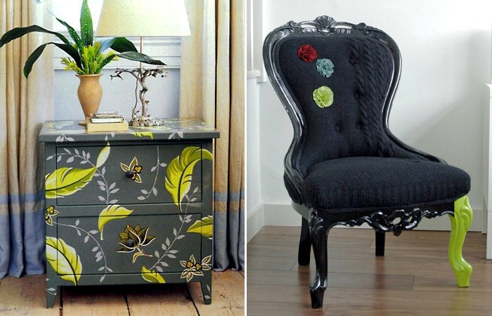 Старая мебель, окрашенная в нестандартный цвет, оживает.