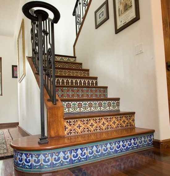 Плитка с узором может чудесно декорировать лестничные ступеньки