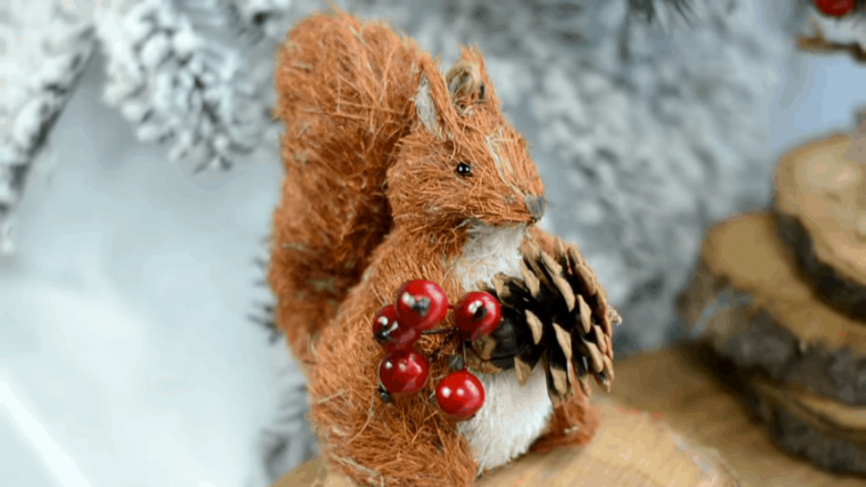 Эффектные реалистичные игрушки в эко-стиле легко сделать самостоятельно. Использовать их можно как для елки, так и в качестве интерьерного декора. Посмотрите на эту чудесную белочку и поверьте, при желании уже через час у вас в руках будет такая же, а может даже две.