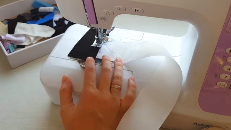 Строчим край на машинке, соединяя лоскутки вместе.
