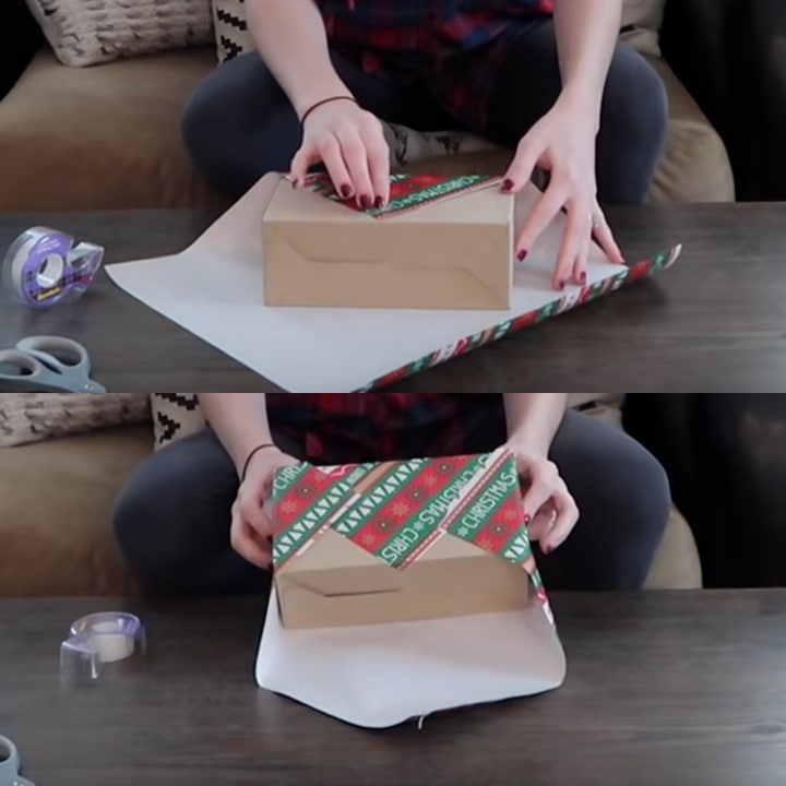 Подверните боковые стороны и накройте подарок ими.