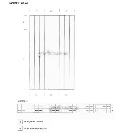 Узором, который дан на схеме 1, вяжите 6 отдельных полос.