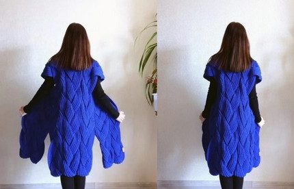 Вы обязательно должные его себе связать. Вяжется он довольно просто — отдельными полосами, которые переплетаются потом в косы и сшиваются между собой.