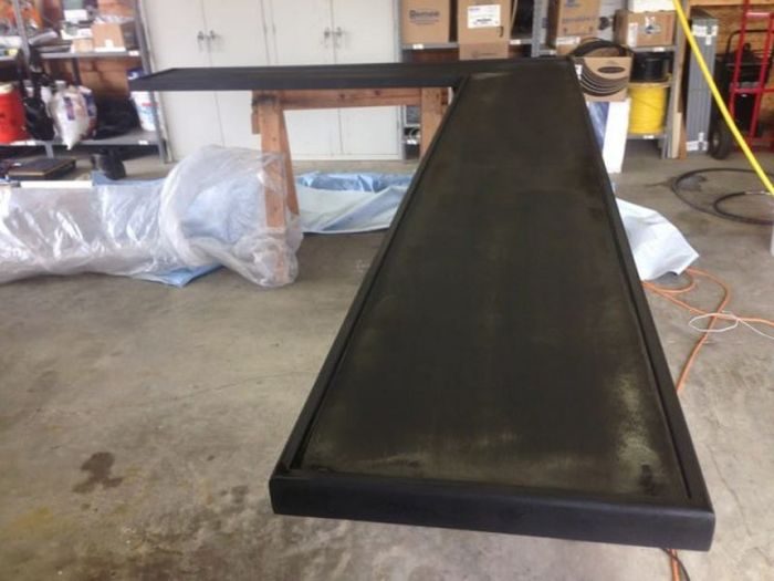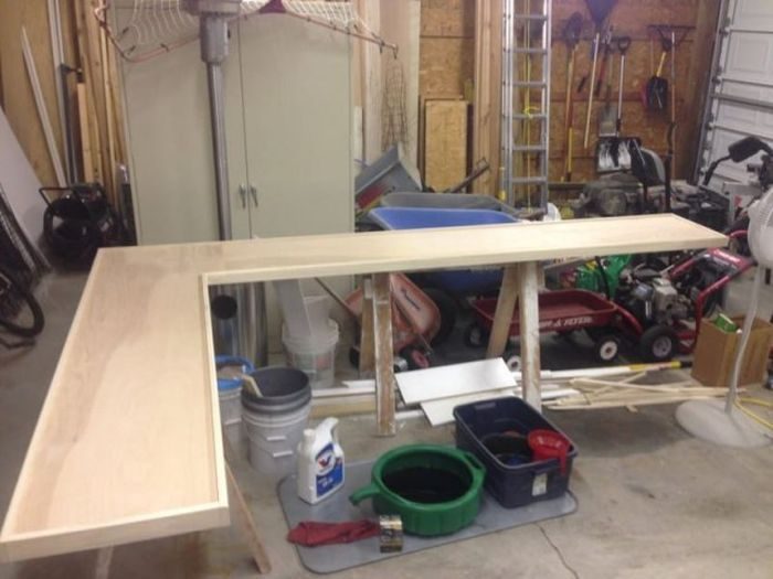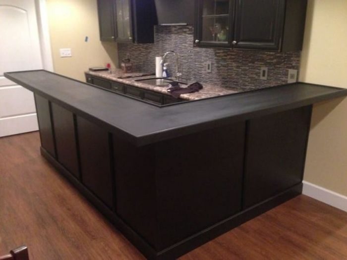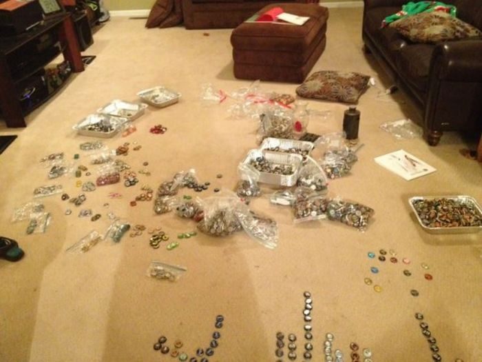 Используя коллекцию бутылочных крышек, которая собиралась в течение 5 лет, парень оборудовал свой домашний бар оригинальной столешницей.