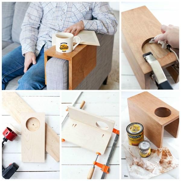 Это небольшое мебельное изобретение не станет универсальным решением всех жизненных проблем, однако позволит наслаждаться чашкой чая или кофе за чтением книги на диване. Подставку можно делать из ДСП или деревянных досок. Цвет выбирайте под мебель, которая у вас уже есть.