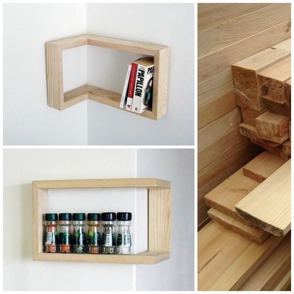 Вам нужна настенная полка? Обратите внимание на этот оригинальный вариант. Шесть досок демонстрируют потрясающее свойство «обходить углы», оставаясь функциональным предметом.