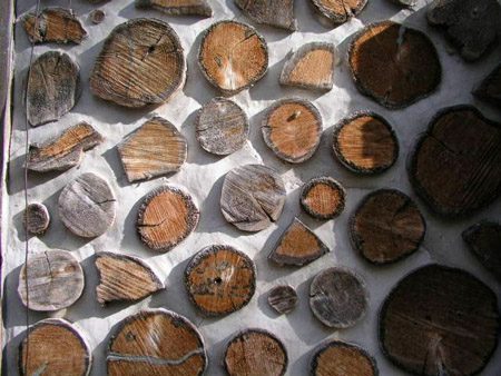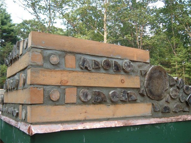 Дерево очень хорошо реагирует на перепады влажности, увеличиваясь и уменьшаясь в размерах, особенно сезонных перепадов. А это неизбежно приведет к разрушению раствора, которым скреплены дрова (или пеньки)
