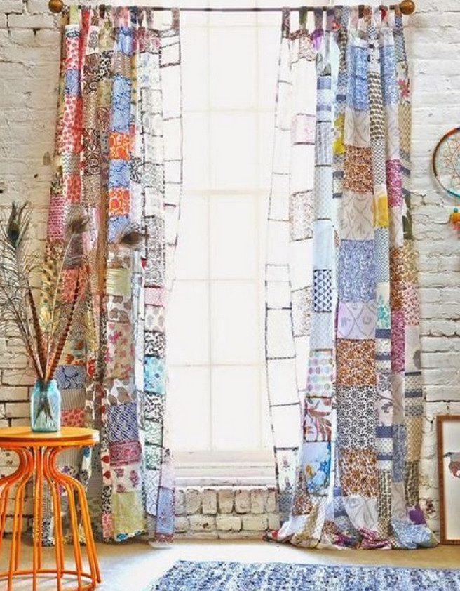 Шторы, выполненные в технике пэчворк, станут изюминкой интерьера. Для их изготовления тебе понадобятся разные кусочки ткани. Можно использовать старые наволочки, пододеяльники, простыни.