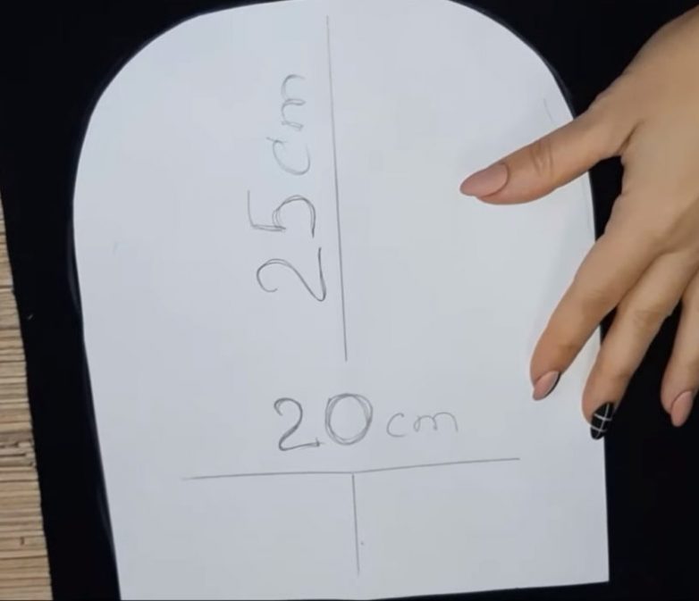 Чтобы вырезать заднюю и переднюю часть рюкзака подготовьте шаблон высотой 25 см и шириной 20 см. Вырезать необходимо только одну деталь, оставляя припуск 1 см.