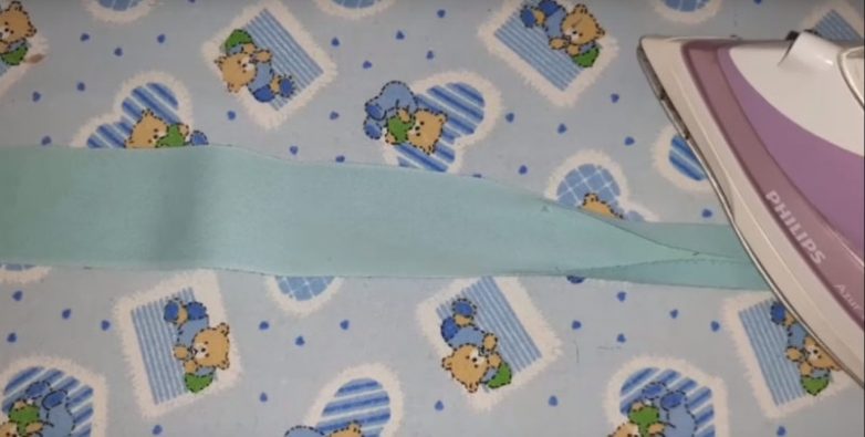 Youtube | Елена РукодельнаяИз распоротых светлых и темных джинсов нарежьте полоски шириной 4 см. Каждую полоску согните к центру по длинной части и заутюжьте.