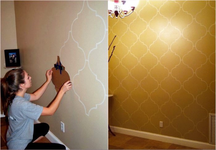 Роспись стен с помощью трафарета.