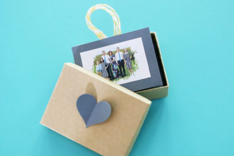 Для начала выберите и распечатайте фотографии. Размер снимков должен быть немного меньше размера коробочки для подарка.