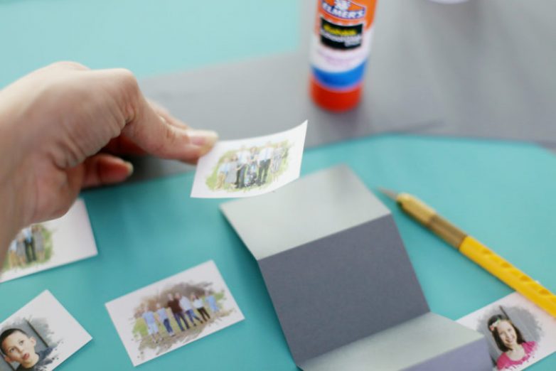 Склейте «гармошки» и приклейте к ним фотографии.