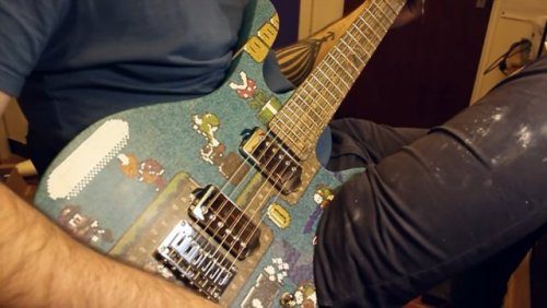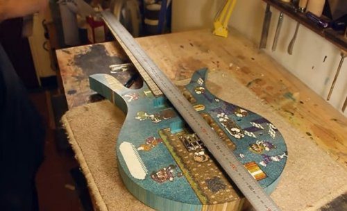 Компьютерная игра «Марио» была в свое время супер популярной и, наверное, чтобы сохранить о ней память гениальный гитарных дел мастер Cranmer Guitars из Глазго, решил сделать гитару с пиксельным изображением игры «Марио» из очень подходящего для такой идеи материала — палочек для леденцов.