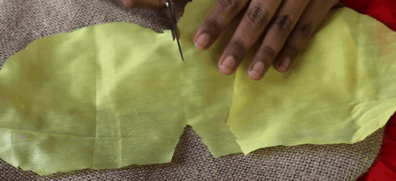 Согнув заготовку вдвое, делаем защипы таким образом, чтобы готовый лепесток имел двойной край, не требующий обработки.