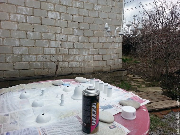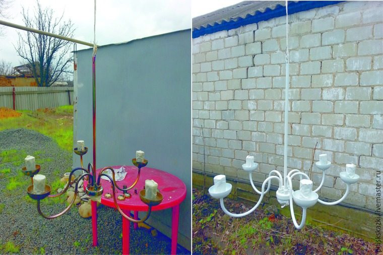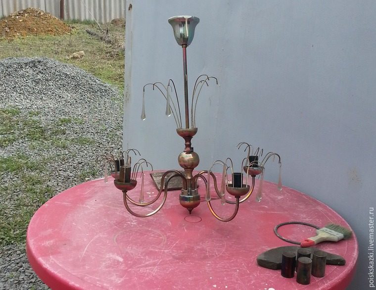 Сначала разобрала люстру и покрасила все, что можно было снять, открутить и покрасить.