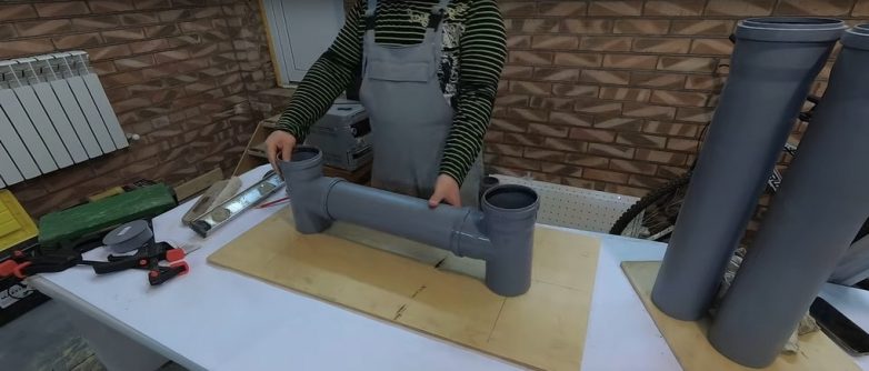 Собираем комплекс, пока это только «наметка». В нашем случае каркас состоит из 6 частей: 4 труб и 2 соединительных блоков – фитингов.