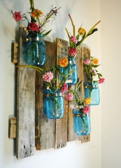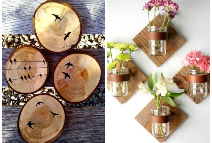 Древесина – универсальный материал, который особенно хорошо смотрится в интерьере, оформленном в экологическом стиле. Для создания бюджетного декора из дерева понадобятся доски и бруски разных размеров, лак, клей и акриловые краски. Интересно смотрятся в интерьере настенные композиции из цветов, закреплённых на деревянных досках. Такой вариант подойдёт даже для интерьеров в стиле прованс или шебби шик.