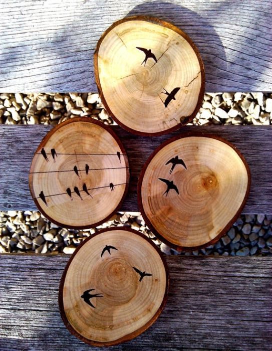 Пеньки применить в интерьере очень легко. На кухне они могут стать стильными подставками под горячее. В гостиной ими можно украсить стену. А если покрыть поверхность пенька грифельной или маркерной краской, то на нём можно оставлять приятные послания или напоминания.