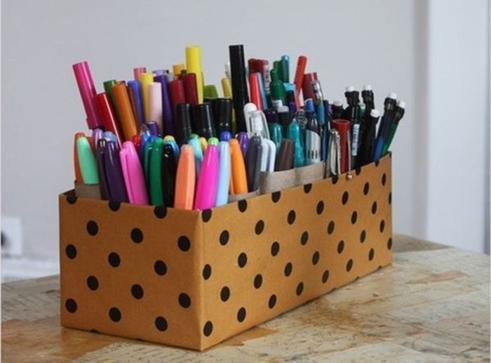 • Принадлежности для творчества. У творческих людей всегда много инструментов для реализации своих идей. У художников это карандаши, краски, эскизы, кисти, бумага, у любительниц шитья и вязания – ножницы, нитки, пряжа, иглы. Содержать все эти предметы в порядке можно при помощи картонных коробок.