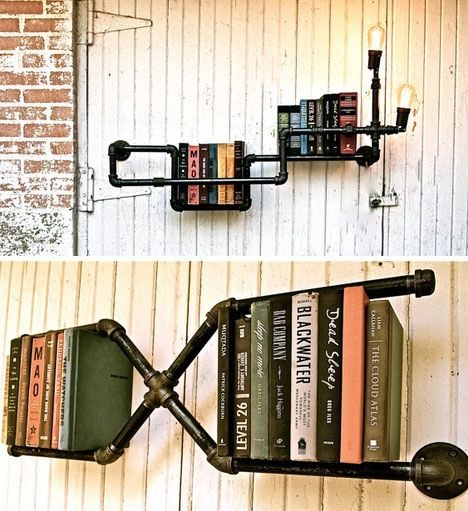 Все трубы имеют резьбу и набор фитингов, что позволяет легко менять форму вашей полки каждые несколько месяцев. Также есть столы и стулья, сделанные из водопроводных труб. Может, кому-то это покажется жлобством, но у всех разные вкусы и предпочтения. Существует огромнейшее количество комбинаций и вещей, которые можно сделать таким образом, мы представляем вам 35 интересных идей, чтобы вдохновить вас…