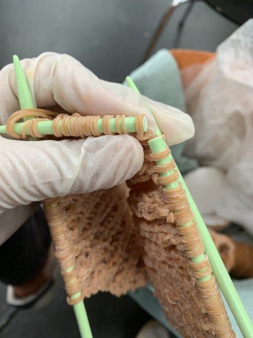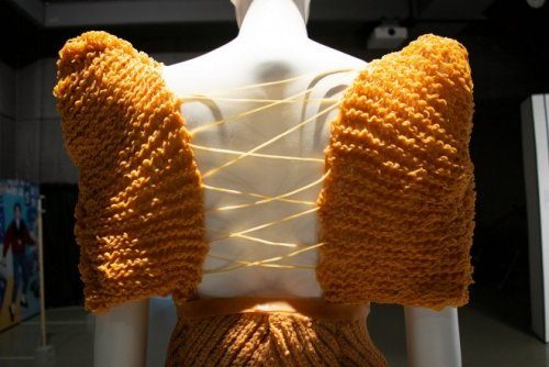 Глядя на стильную одежду, созданную выпускницей университета искусств Рие Сакамото (Rie Sakamoto), можно подумать, что она сделана из коричневой пряжи, но на самом деле каждая вещь в ее коллекции связана из резинок.