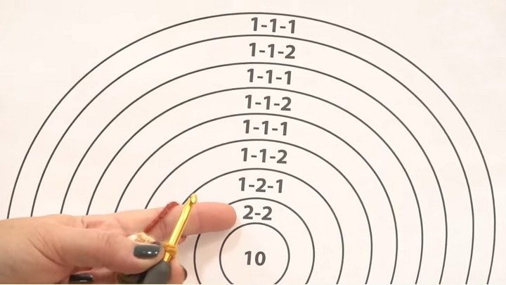 Вязание начинается с формирования кольца из 5 петель. Далее начало ряда помечается маркером, и вязание идет по кругу столбиками без накида.