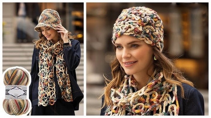 Оригинальные шарф и шапка на основе обычной цепочки крючком