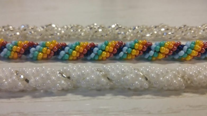 Плетите в этой технике до самого конца работы. Уже через пару петель рука набивается, и работать становится совсем просто и быстро. В конце на петельки не забудьте вставить замок на готовый браслет или ожерелье.
