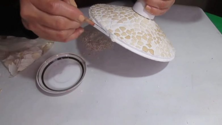 Далее нанести клей ПВА и приклеить небольшие кусочки яичной скорлупы.