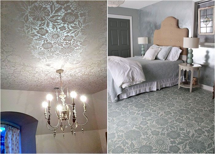 С другой стороны, можно декорировать кружевом не только потолок, но и пол. Посмотрите на красивое кружево голубого оттенка. Этот декор представлен компанией HomeTalk.
